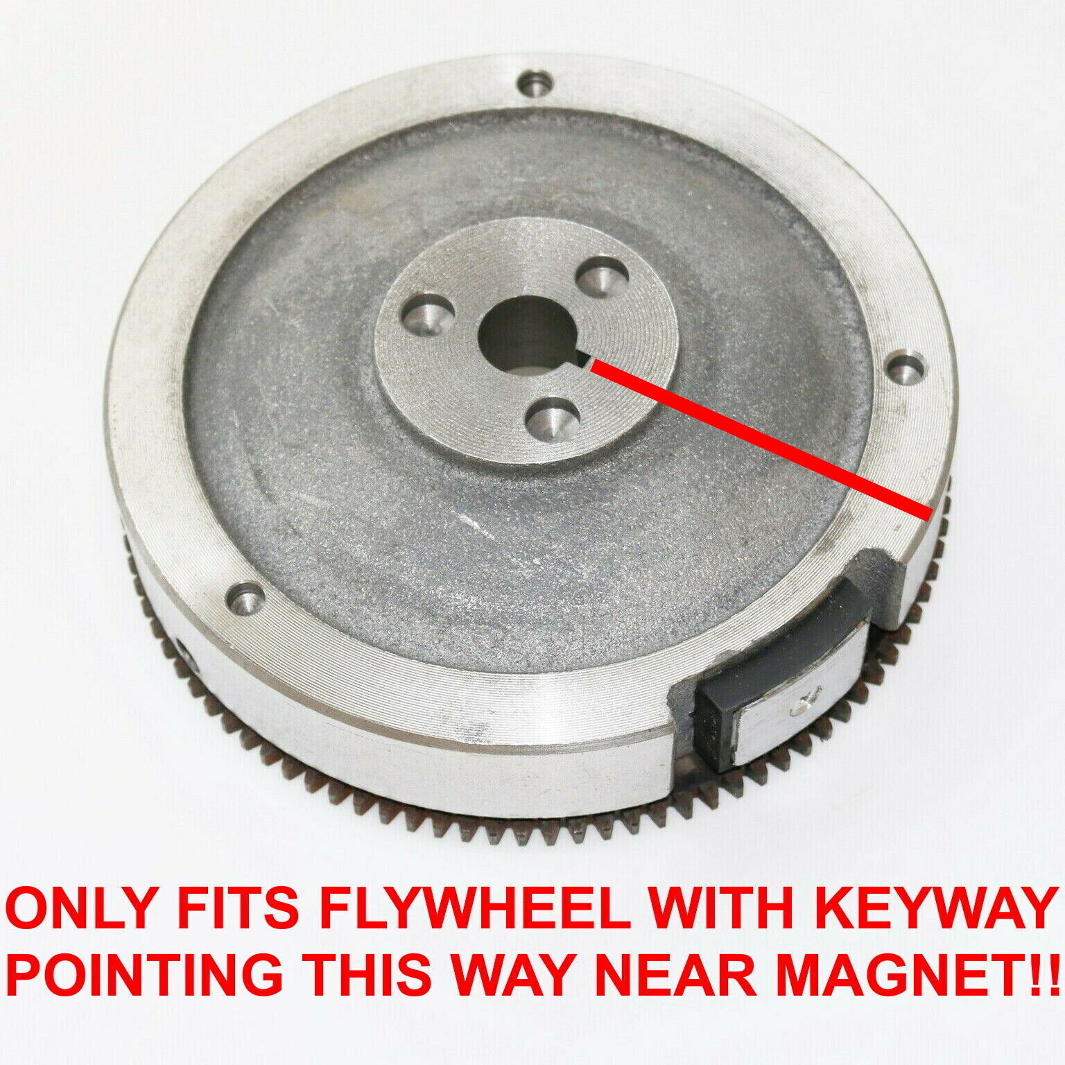 suit most GX340 11hp and GX390 13hp series Stationary Engines and most Chinese Copy Stationary Engines.PLEASE NOTE THIS FLYWHEEL WILL ONLY FIT ENGINESTHAT HAVE A KEYWAY THAT POINTS NEAR THE OUTER MAGNETON THE FLYWHEEL.(Please check before you buy.)