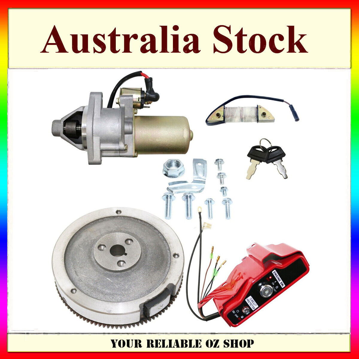 Electric Starter Motor Flywheel Kit For Honda GX340 GX390 188F 11HP 13HP Engine