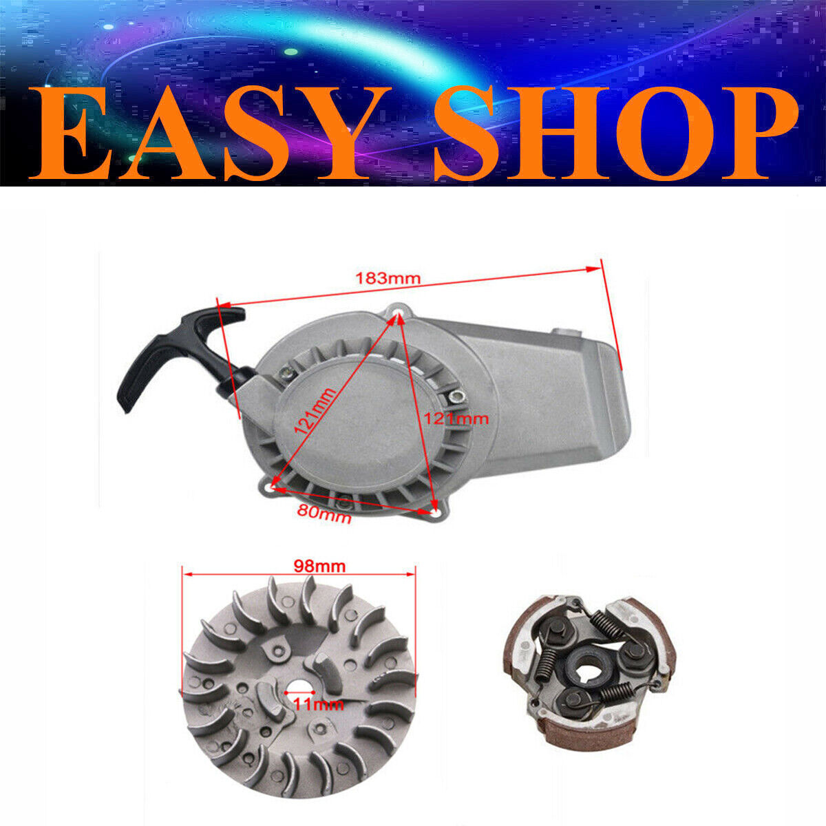 Flywheel clutch Alloy Pull Start Starter 43c 47cc 49cc ATV QUAD Dirt Pocket Bike